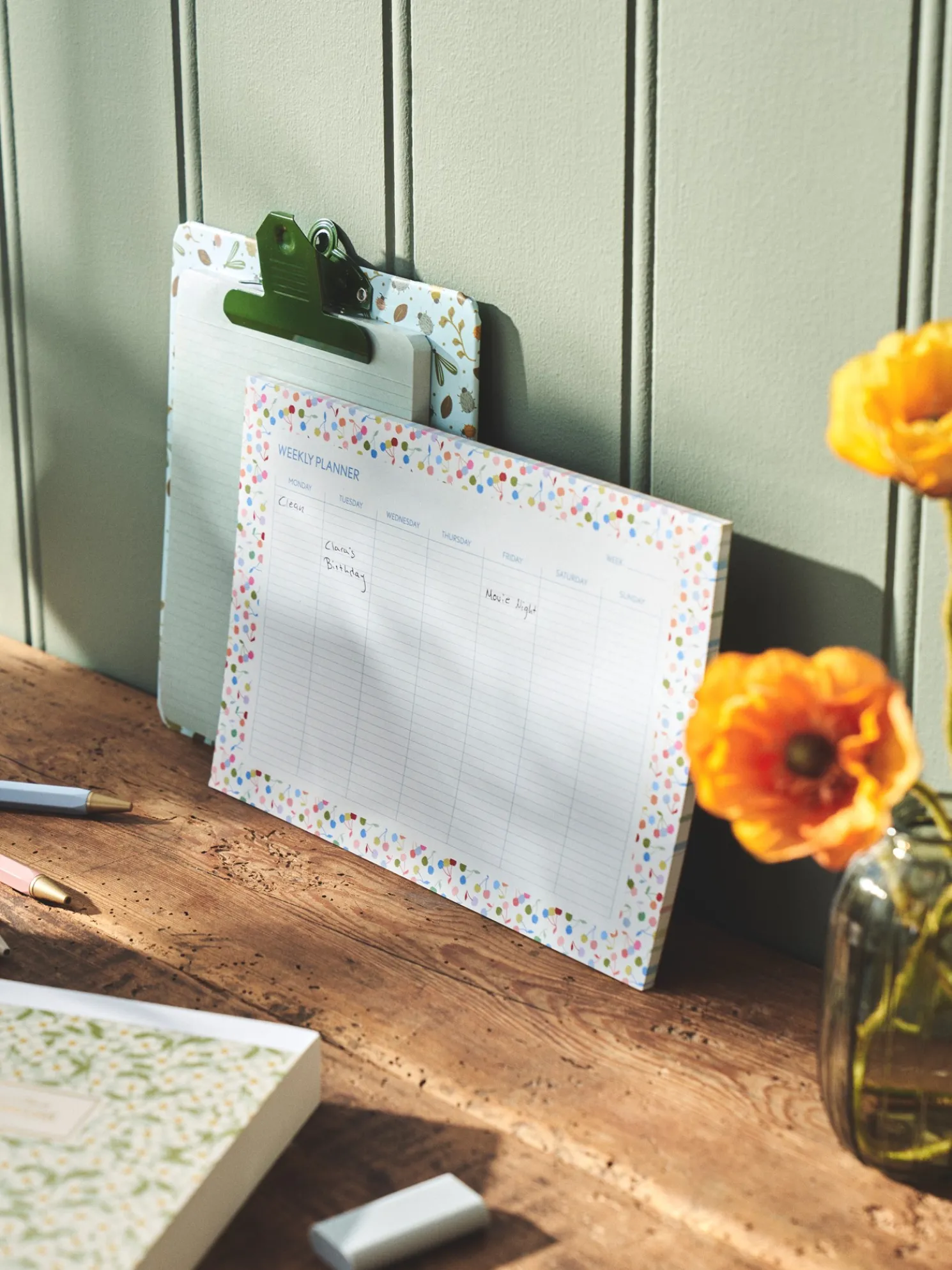 Der Wochenplaner der Schwestern besteht aus FSC®-zertifiziertem Papier und hat 50 Blatt.