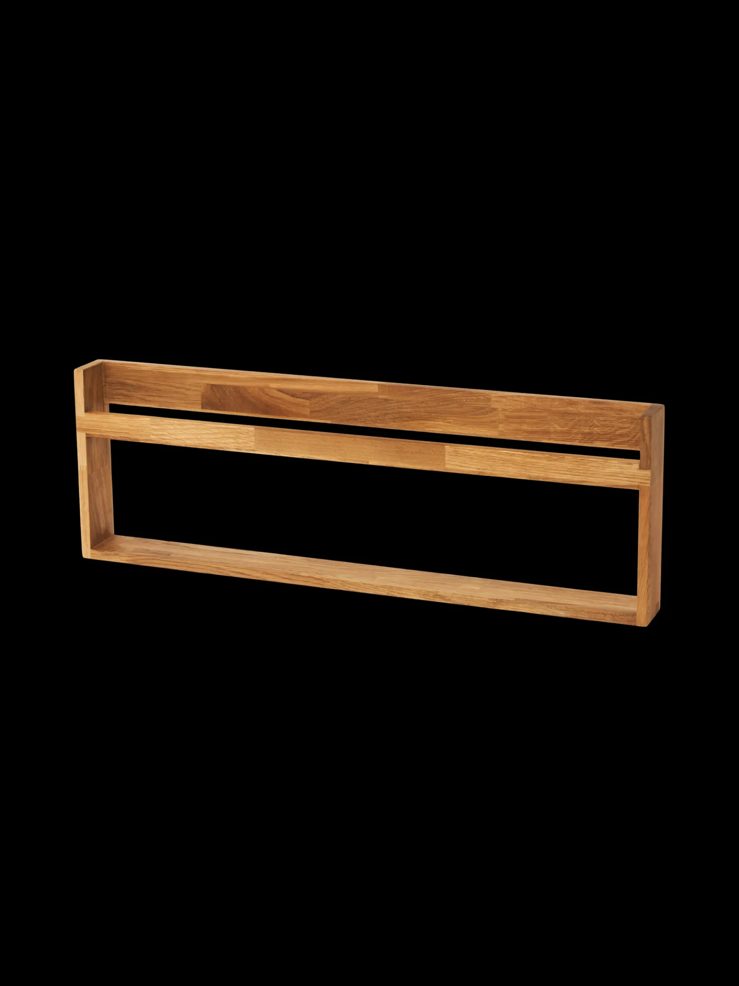 Der Zeitschriftenhalter der Schwestern besteht aus FSC®-zertifiziertem Eichenholz. Sie kann als Regal für Bilderbücher oder Kochbücher verwendet werden.